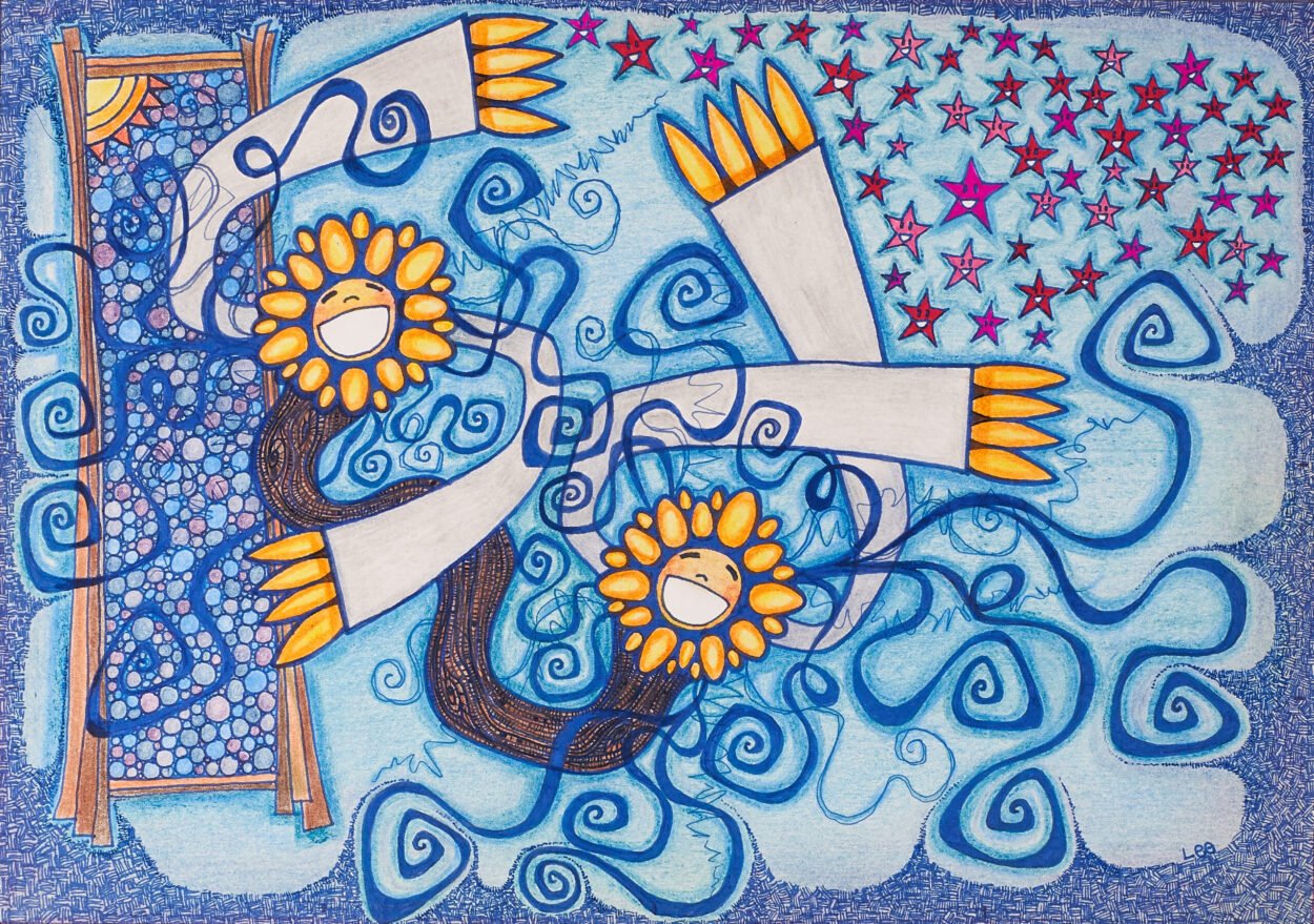 La concebí yo, Hun Deok Lee, artista multidisciplinar de raíces surcoreanas y alma mediterránea, afincado en Barcelona desde 1982. Esta obra tiene su germen en un dibujo que hice en 1997: una imagen naíf que forma parte de una serie de doce ilustraciones que fui gestando durante tres años de exploración íntima. Fue una época marcada por el descubrimiento del color como lenguaje musical, una paleta emocional que hoy resurge transformada en forma de canción.
